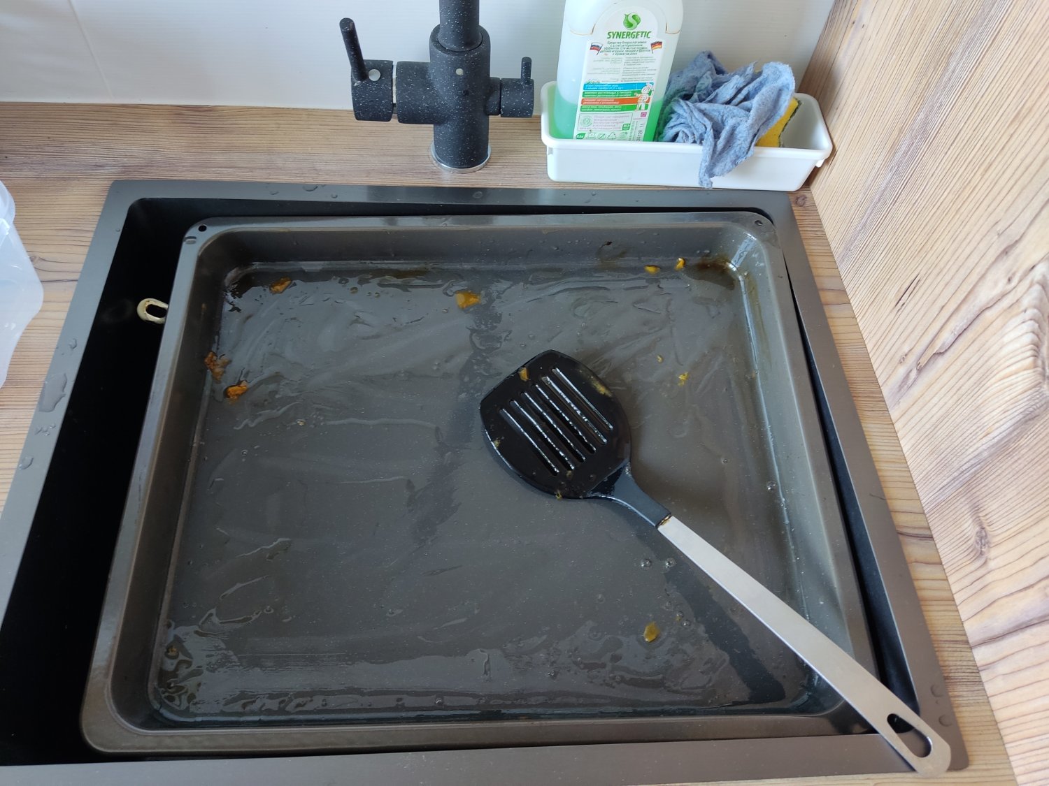 1. Раковина, в которую помещается противень, ведро и ещё куча всего.