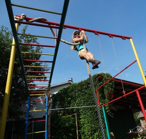 Таира 3597 Опубликовано: 3 июня 2015 Рассказать Опубликовано: 3 июня 2015 А фото есть всего этого счастья? Наташ, к сожалению, у нас нет единого "спортивно-развлекательного комплекса", всё раскидано по разным углам, т.к. придумывалось всё по мере запросов старшей дочери (она у нас главная спортсменка в семье) и участок был почти в 2 раза меньше, чем сейчас.- на скейтах катаются по забетонированной дороге-подъезду к гаражу, дорога под небольшим уклоном, кататься самое то- для футбола , волейбола, баскетбола, бадминтона у нас места достаточно - только коси-для велосипедов - вся деревняДва года назад (в честь присвоения 1 сп.разряда) из подручного материала сварили вот такое сооружение - очень ей хотелось залезать по веревочной лестнице, отдыхать лежа в гамаке и раскачивать полусолнышко на узле каната Ссылка на сообщение Поделиться на других сайтах