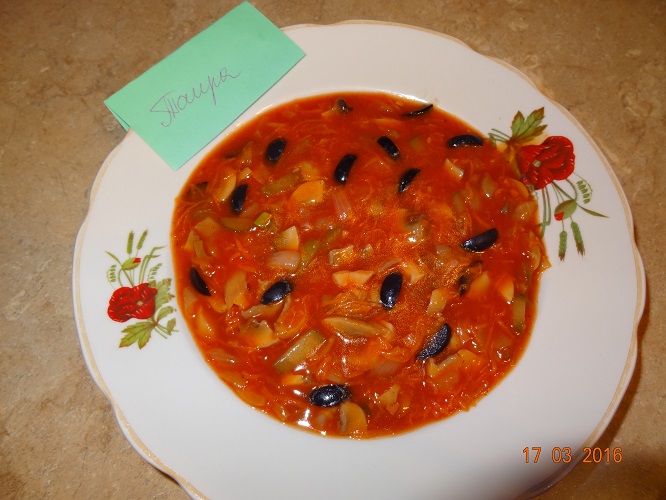 Солянка с грибами и фасолевым пюре.