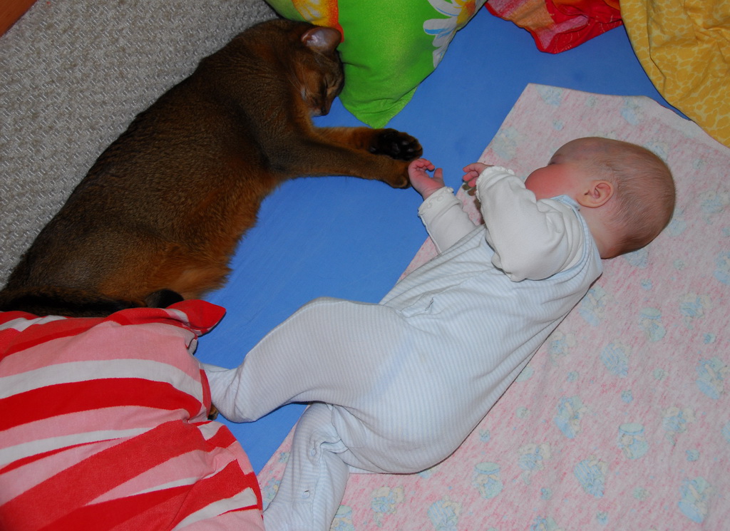 ninonss 132 Опубликовано: 18 сентября 2010 Рассказать Опубликовано: 18 сентября 2010 Он очень любит когда его целуют и гладят, он готов целыми днями балдеть от этого, а еще так как по природе это порода любит все высокие места, то он постоянно сидит и разрабатывает новые планы покарения шкафов. Эти коты очень любят детей и ненавидят одиночества - Аргошка просто обажает Настенку он всегда рядом, что бы она не делала, спит, кушает, играет, а теперь научилась ползать и он с ней играет в прятки, и доганялки - пока Аргошка побеждает. А фот фотка самая любимая моя - мои Любимцы спят вместе!) Ссылка на сообщение Поделиться на других сайтах